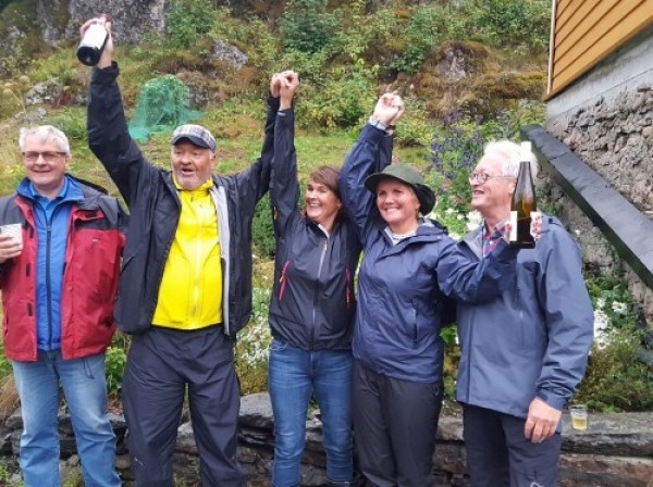 Enkelte av regnbygene var meget heftige. Utenom dem var det bare vanlig regn. Men været satte ingen som helst demper på den gode stemningen under Arna Rotaryklubbs etter hvert tradisjonsrike kroketturnering på godset til Sveinung Mjelde på Brattland for klubbens medlemmer og ledsagere.De 62 deltakerne hadde kledd seg for været og humøret var på topp. Aldri før har partyteltet gjort større nytte. Etter loddtrekning ble deltakerne inndelt i lag, Mens halvparten av deltakerne spiste en svært velsmakende betasuppe inne i gamlehuset, gjennomførte de andre deltakerne sine innledende runder etter turneleder Hallvard Mjeldes milde instruksjoner. Og etter det ble rollene byttet. Etter at serveringen var unnagjort for alle, fortsatte turneringen med semifinaler og finale. Det kan virke som ledsagerne gjør det bedre i turneringen enn rotarymedlemmene. Slik var det i hvert fall i år. De suverene vinnerne ble Vibeke Veland Mjelde og Karstein Andersen.